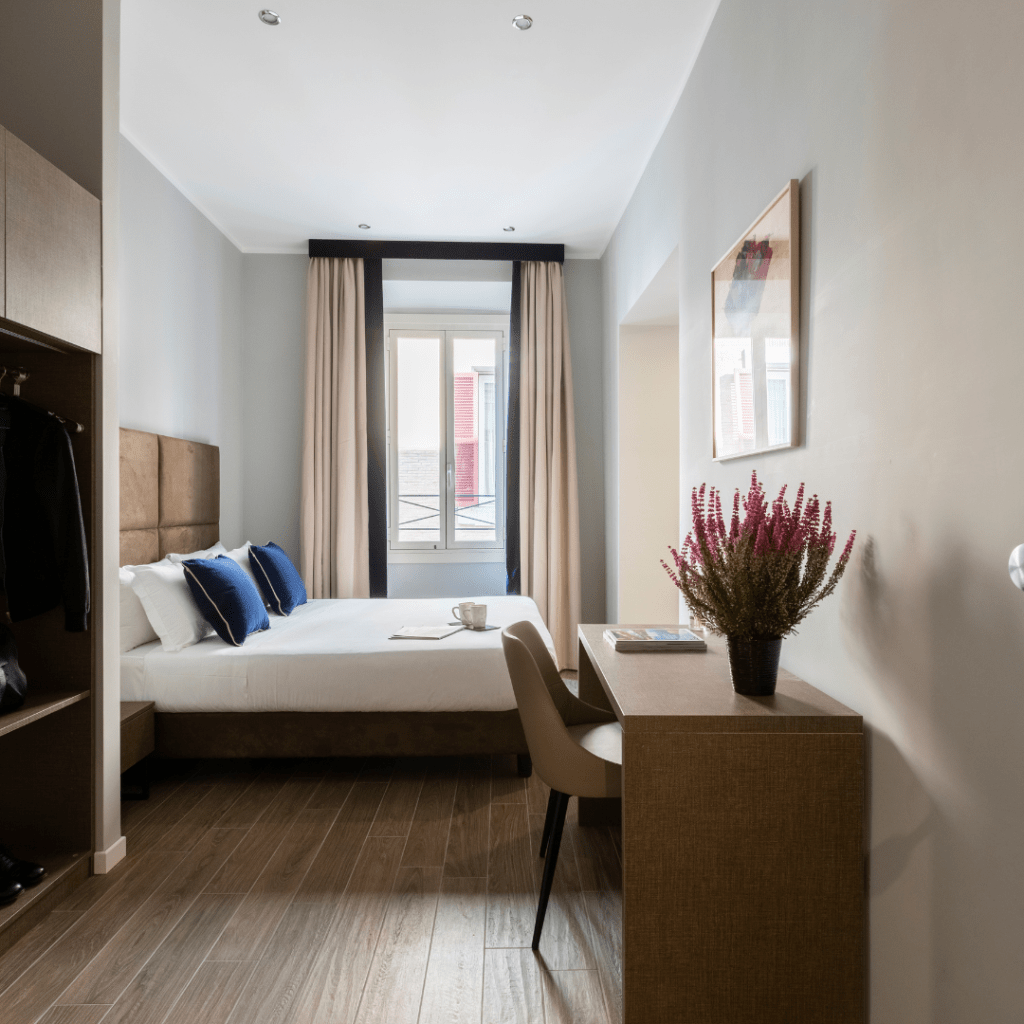 Scopri l’eleganza delle nostre suites. Le suite si distinguono per lo stile e la portata dei dettagli dell’ambiente interno e sono situate nel cuore di Roma.